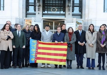 Topuria sostiene una Senyera en Madrid en recuerdo de las víctimas de Campanar