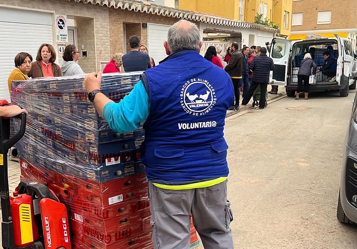 El Banco de Alimentos ha programado para mañana martes el reparto de productos en tres lugares, la sede de la entidad en la Pobla de Vallbona, los bajos del estadio de Mestalla y en un local en Picanya, esto último dentro del reparto mensual en los municipios de la zona dana. Sólo en estos pueblos, señaló el presidente de la entidad, Jaime Serra, se atiende a más de 5.600 damnificados de las inundaciones del pasado 29 de octubre y cada vez son más.