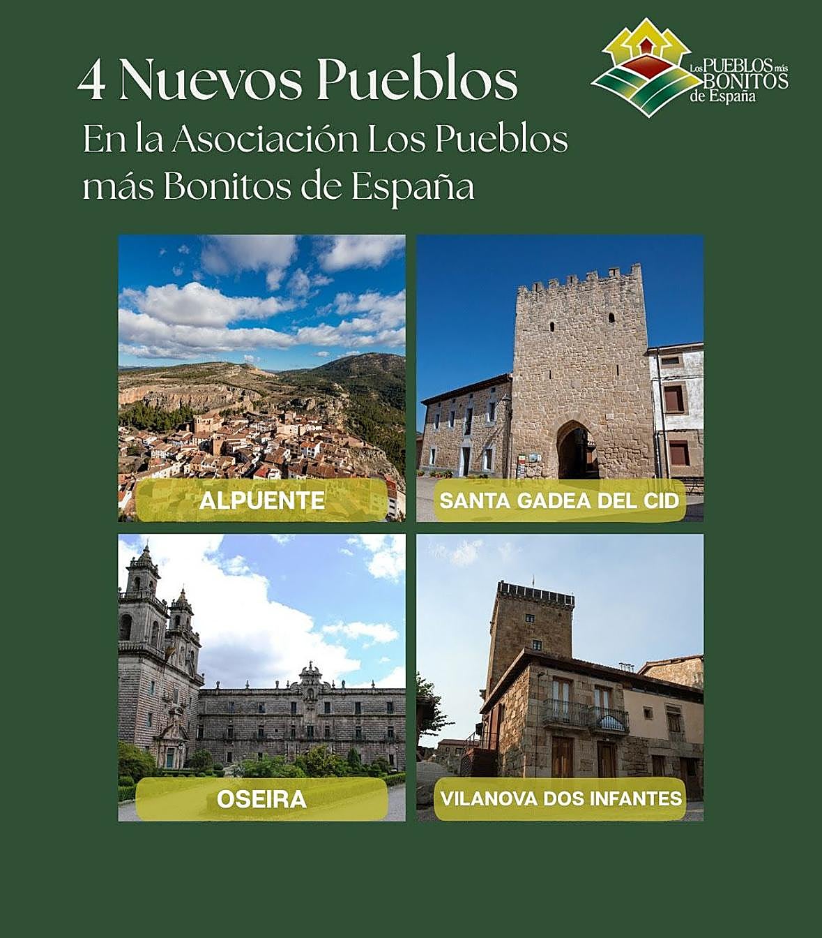 Hasta ahora, la asociación contaba con 122 pueblos, repartidos por toda España, pero esto cambiará con la entrada del nuevo año, ya que se ha decidido ampliar la lista con cuatro nuevas localidades que contarán con este precioso título. Los pueblos elegidos han sido Vilanova dos Infantes y Oseira (ambos pueblos de la provincia de Ourense), Santa Gadea del Cid (Burgos) y Alpuente (Valencia).