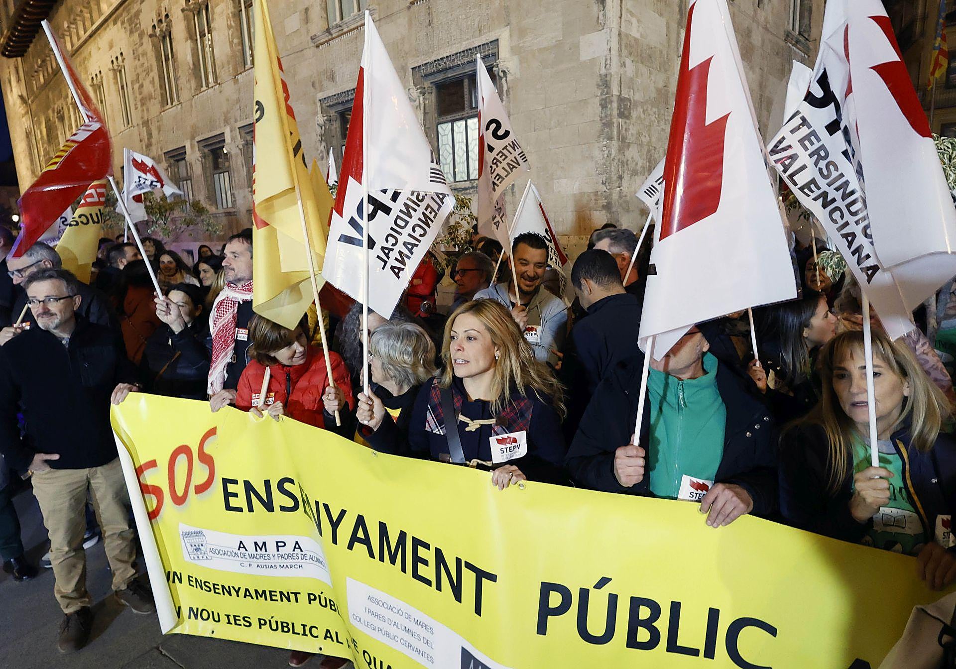 Mari Carmen Ortí hereda un conflicto que tiene visos de enquistarse. La relación con los representantes del profesorado de la enseñanza pública es extremadamente tensa, y sobre la mesa hay una batería de medidas de presión inéditas en la Comunitat: al menos siete huelgas con la posibilidad de que en mayo sea indefinida. De confirmarse el final del curso sería extremadamente complicado. Detrás del órdago está la exigencia de la mayoría sindical de que se mejoren las retribuciones del profesorado -su salario mínimo es de 2.400 euros brutos, de los más bajos de España- y también las condiciones laborales: ratios de alumnos por aula más bajas o un plan realmente efectivo para reducir burocracia. Cuando se le pregunta al sindicato mayoritario, el STEPV, sobre qué le pide al nuevo equipo, se remite al comunicado enviado pocas horas después del nombramiento, en el que se le insta a sentarse a negociar. La Plataforma en Defensa de la Enseñanza Pública, un conglomerado de organizaciones de familias, alumnos y sindicatos, apoya los paros, aunque sin aludir tan claramente a la cuestión salarial. Se limita a hablar de condiciones dignas. Anpe, única organización que se desmarca de las medidas de presión, comparte la exigencia retributiva.