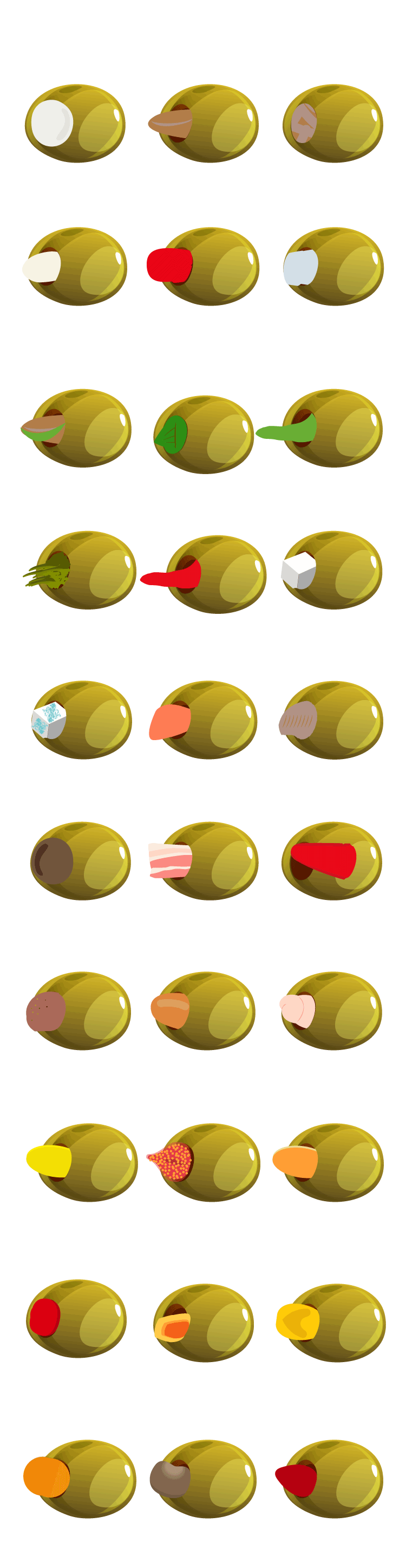 Las aceitunas son de la variedad manzanilla y vienen de Andalucía y Extremadura. Se someten a una fermentación microbiológica al estilo sevillano, es decir, con sosa cáustica para eliminar a amargura.