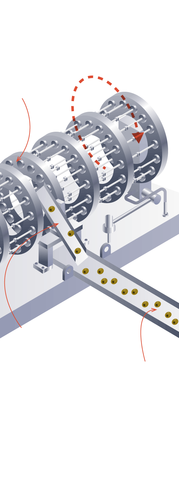 El mecanismo es una combinación de ejes rotatorios y pistones