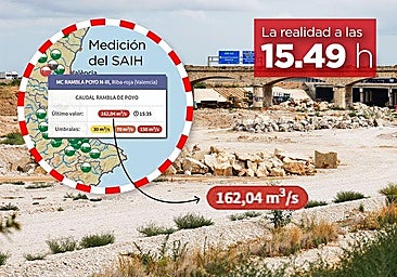 Resulta físicamente imposible explicar cómo se pueden decretar hasta nueve alertas por riesgo de desbordamiento en los últimos 15 días sobre un barranco seco, sin ... que haya llovido ni una gota en toda su cuenca. Esta particular casuística es uno de los sinsentidos protagonizados por el sensor del Sistema Automático de Información Hidrológica (SAIH) instalado sobre el barranco del Poyo junto a la A-3 a la altura de Riba-roja. Que la red de medidores con la que la Confederación Hidrográfica del Júcar (CHJ) vigila los cauces de la demarcación ya no es el mejor modelo para controlar los caudales es una evidencia. Para prueba un botón: el organismo presidido por Miguel Polo pareció entonar el 'mea culpa' tres semanas después de la dana al iniciar los trámites para instalar un Sistema de Alerta Temprana (SAT), un modelo predictivo que permite detectar con antelación las crecidas y que sí se encuentra operativo en el Ebro, pero no en la Comunitat.