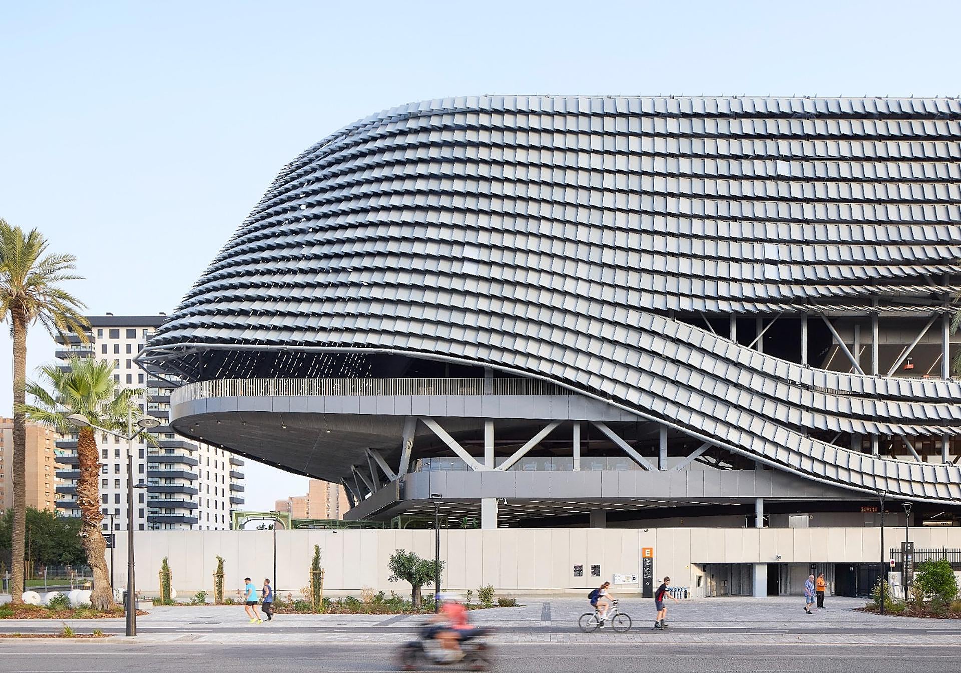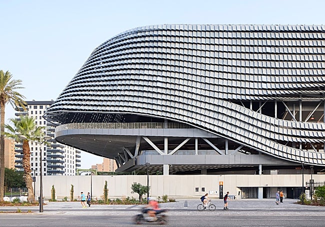 Todo itinerario por el interior del Roig Arena incluye una percepción clave: se trata de una criatura multisensorial. Carece por lo tanto de único corazón: esa materialidad «singular y novedosa» que mencionan Roig y Martí se refleja en una carnalidad muy sincera, porque desde cada rincón se está bombeando una corriente de emociones a quienes lo recorren. El resultado final es la suma de las diversas vetas que lo componen, desde el espacio central a la pista donde entrenan los equipos de baloncesto, pasando por su identificación como un gran escenario de índole teatral cuando la ocasión lo requiere o sus distintos formatos para los variados espectáculos que alberga en función de su naturaleza o del número potencial de espectadores… Bombea también su propio riego sanguíneo el haz de servicios de restauración, hasta alcanzar esa ambición que iluminó sus primeros quehaceres con el tablero en blanco: como se suele decir de los grandes vinos, que saborear el Roig Arena invite a pedir una copa más. Abrir otra botella: a diferencia del resto de arenas repartidos por todo el mundo, su pariente valenciano aspira a que quien sale de ver un partido o un show, se detenga un rato a paladear el edificio mientras lo abandona. «Es un espacio para descubrirlo y también vivirlo», explican los arquitectos. «Y para luego recordar lo descubierto y lo vivido». De ahí su satisfacción: «Es lo que está ocurriendo ahora». Un sentimiento al que ayuda la escala humana del edificio y el énfasis con que se enfocó su construcción en el aspecto de libertad y seguridad, que se condensa en los principios operativos percibidos durante este paseo: de lejos, ofrece la apariencia de globalidad, nunca de fragmentación; en la distancia corta, fruto de su buena relación con los edificios residenciales de los alrededores, agrega a estos factores la idea central de fácil accesibilidad «y te da perspectiva». «La escala se adapta a la distanciad desde donde se percibe gracias a su fachada de 8.600 lamas cerámicas», sostienen sus creadores.