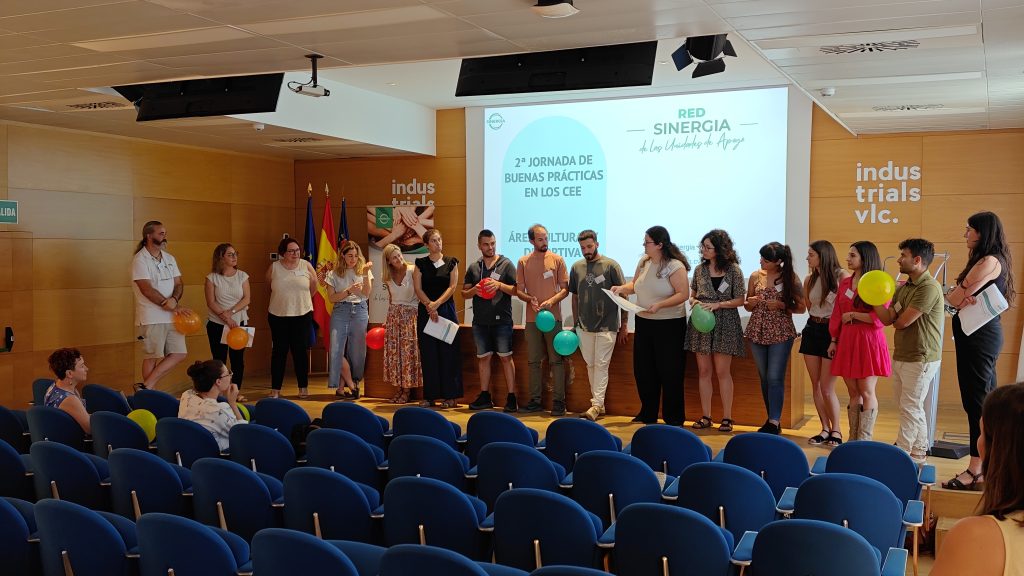 • 2. Jornada de Buenas Prácticas en los Centros Especiales de Empleo (CEE) (20 junio 2025). Desde la Cátedra y con la red de CEE SINERGIA se ha celebrado la segunda edición de estas jornadas con una buena presencia de profesionales tanto de la UPV como de CEE. Esta jornada integró formación en cultura, deporte e inclusión laboral con la participación activa de estudiantes y colectivos vulnerables, promoviendo transferencia de conocimiento y metodologías ApS desde la universidad hacia el sistema público valenciano de servicios sociales.
