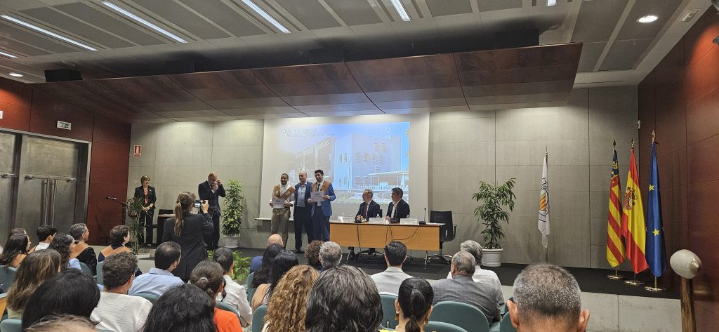 La cátedra ha promovido además la participación del estudiantado en competiciones internacionales. Los alumnos Jared José Ulloa Miranda y Henrry Wilson Balboa, del Máster en Edificación, fueron reconocidos tras ganar la fase previa celebrada en la ETSIE, obteniendo como premio la participación en la Hall of the Year Academic 2024 student competition de la Universidad Tecnológica de Praga.