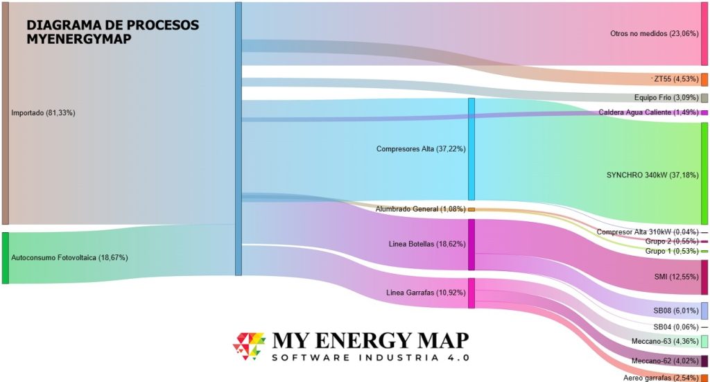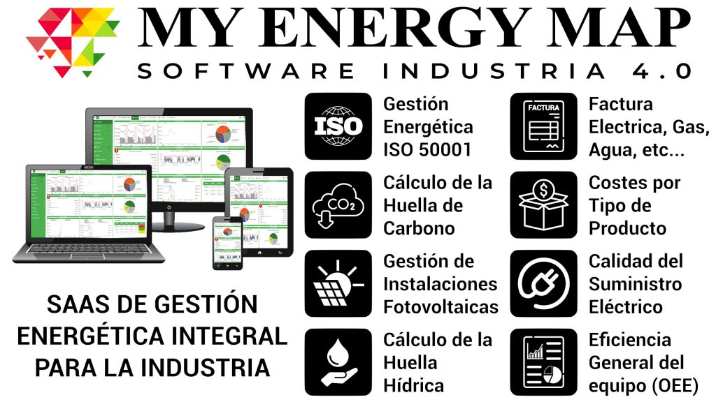 -MyEnergyMap es un software de gestión energética integral para la industria. Es decir, una herramienta innovadora que permite monitorizar, analizar y gestionar el consumo y coste energético de manera eficiente. Consiste en recopilar datos en tiempo real sobre el uso de energía, proporcionando información clave a través de gráficos, informes y alertas personalizadas. Monitorizamos todos los recursos energéticos que necesita la industria: electricidad, gas, agua, vapor, etc. pero también monitorizamos la generación energética: fotovoltaica, cogeneración, etc. Nos diferenciamos porque somos capaces de traducir todos los consumos a costes de forma precisa ya que integramos cualquier tarifa fija o indexada de gas y electricidad. Además, la plataforma se actualiza continuamente con los cambios normativos de forma que somos capaces de simular cualquier factura de forma exacta y automática. También monitorizamos la producción lo que nos permite cruzar datos de energía y producción y calcular automáticamente los costes energéticos de cada línea, proceso y formato de producto. Trabajamos continuamente para ofrecer nuevas soluciones a la industria: Cálculo automático de la Huella de carbono según requisitos del MITECO (Ministerio para la Transición Ecológica y el Reto Demográfico), cálculo de la generación fotovoltaica teórica en función de la radiación solar, cálculo del OEE por línea y turno de trabajo, etc.