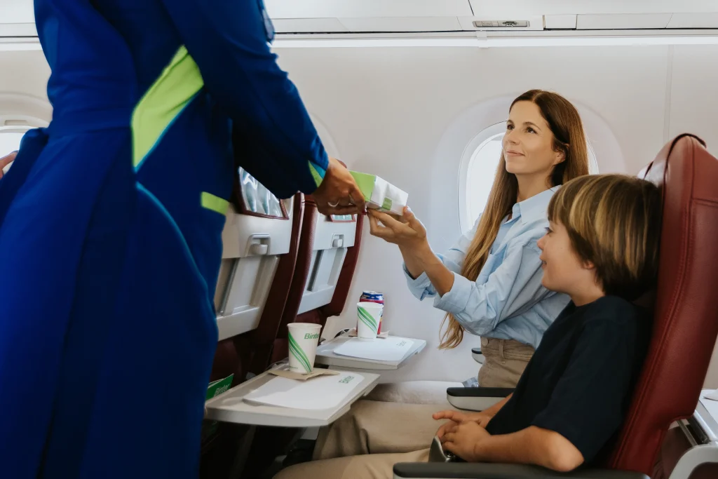 Sus modernos aviones Embraer E2 están concebidos para ofrecer espacio y confort en cada asiento. La configuración 2+2 elimina el incómodo asiento central, garantizando siempre ventanilla o pasillo y más amplitud para las piernas, de manera que cada pasajero puede relajarse y disfrutar del vuelo. A bordo, la experiencia se completa con un aperitivo gourmet elaborado con productos frescos y genuinamente canarios –que varían según la ruta y el tipo de pasajero–, un entretenimiento a la carta con películas, series, música, prensa digital y juegos, y la comodidad de llevar siempre el equipaje de mano consigo, sin coste adicional ni complicaciones.
