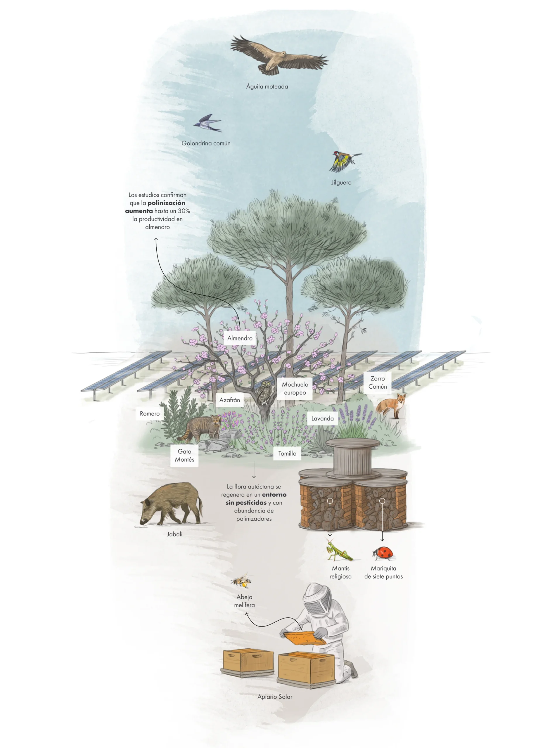 Este concepto de biodiversidad solar representa la alianza entre tecnología y ecosistemas naturales, demostrando que el progreso y la naturaleza pueden crecer juntos. El proyecto cuenta con la colaboración de la Reserva de la Biosfera del Valle del Cabriel, El Rincón de la Abeja y la Fundación Medioambiental, entre otras entidades.