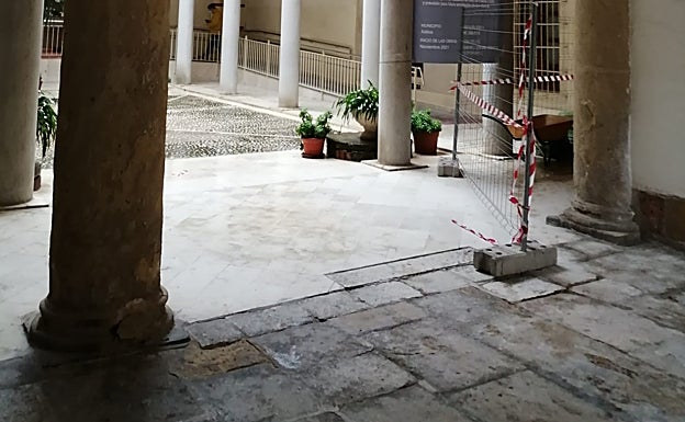 Denuncian daños en una columna del atrio del antiguo Hospital Reial de Xàtiva