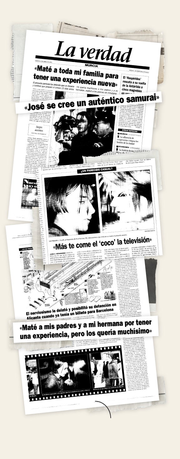 Dos días después del dantesco crimen, el adolescente fue detenido en la estación de trenes de Alicante gracias a que una quiosquera de la zona identificó al joven a través de la fotografía publicada en exclusiva por LA VERDAD. «Él era un chaval bastante desorientado (...) Quería ser libre y sabía que sus padres no se lo iban a permitir», concluye Torices. Este veterano periodista, que durante más de una década escribió en las páginas de este diario, echó esas semanas más horas que un reloj escarbando en los entresijos de un caso que había despertado la curiosidad a nivel mundial y estaba blindado bajo llave. Su pericia le permitió tener acceso en primicia a la primera declaración que el menor prestó ante el juez instructor en la que reconoció que había cometido el crimen porque quería estar solo en el mundo. «Recuerdo esa declaración como si fuera ayer», recalca.