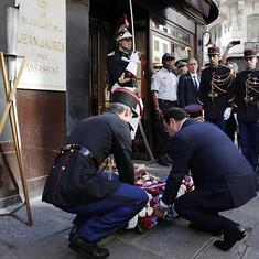 Hollande deposita una ofrenda floral en el lugar donde fue asesinado hace cien años el político pacifista, figura emblemática de la izquierda francesa y que hoy reivindica también la derecha