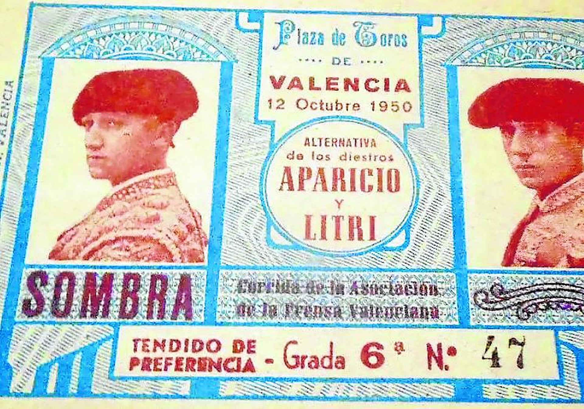 Los tres, Valencia, Aparicio y Litri, quien a su toreo emocionante y cuasi trágico añadía su condición de valenciano tanto por adopción directa de los aficionados como por el cincuenta por ciento de su ascendencia –su madre era de Gandía– se habían encontrado en las fallas del 49. Fue conocerse y enamorarse apasionadamente los tres, pero es la temporada de 1950, justo cuando los dos matadores están bajo el apoderamiento de Camará, cuando se desbordan todos los cálculos. Aquel año desaparecieron las corridas de toros. Ni en Fallas ni en Feria se programan festejos mayores. Sólo para cerrar la temporada, 12 de octubre, en un festejo que rápidamente se convirtió en leyenda, se anuncia corrida de toros: el festejo es el resumen y culminación de dos años de pasión que nunca se volverían a repetir con tales dimensiones. Aquella tarde Joaquín Rodríguez Cagancho concede la alternativa a los dos fenómenos. Naturalmente no cabe un alfiler en la plaza, llegan medios de comunicación de medio mundo y todo cuanto sucede se enraíza definitivamente en el territorio de la leyenda.