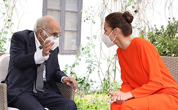 Francisco Brines, uno de los grandes poetas del idioma castellano, obtuvo el Cervantes en noviembre de 2020. Su estado de salud y la recomendación de los médicos de que no se moviera de su casa hizo que el pasado 23 de abril no acudiera al tradicional acto de entrega en la Universidad de Alcalá de Henares. Por ello, Don Felipe y Doña Letizia se desplazaron el pasado miércoles a la finca familiar del autor, L'Elca, para participar en un acto íntimo que duró algo más de una hora y el que el Monarca celebró haberle podido entregar «personalmente» el reconocimiento al autor de 'El otoño de las rosas'.