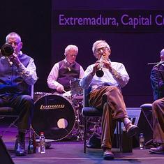 El director agradeció la propuesta de la Junta para actuar en Badajoz entre los conciertos de Mónaco y Barcelona. «Estamos aquí para que más gente disfrute del jazz porque este tipo de actos favorecen al jazz». Sobria fue también su salida al escenario del Manuel Rojas. Pasaban las ocho y media de la tarde cuando el pianista de la banda empezó su solo con las luces todavía encendidas y parte del público acomodándose.