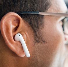 Un hombre prueba los airpods, los nuevos auriculares de Apple para el iPhone 7.