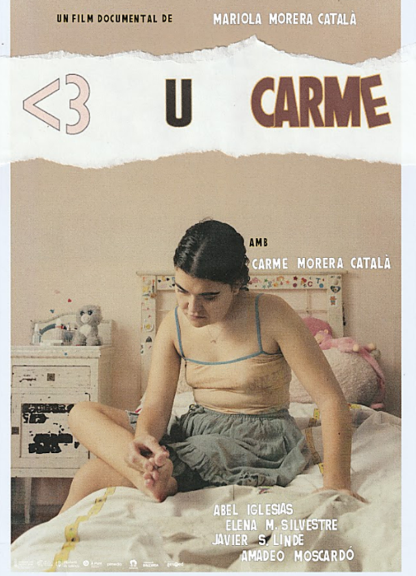 El jueves 20 de noviembre se estrena el largometraje documental '< 3 U Carme' (Love You Carme) en los cines ABC Park a las 20 horas. La película, dirigida por Mariola Morera y Eva Vizcarra y producida por PTMedia, es un largometraje documental basado en los libros 'A mi, què em passa?' y 'Mira'm als ulls' protagonizados por Carme Morera.