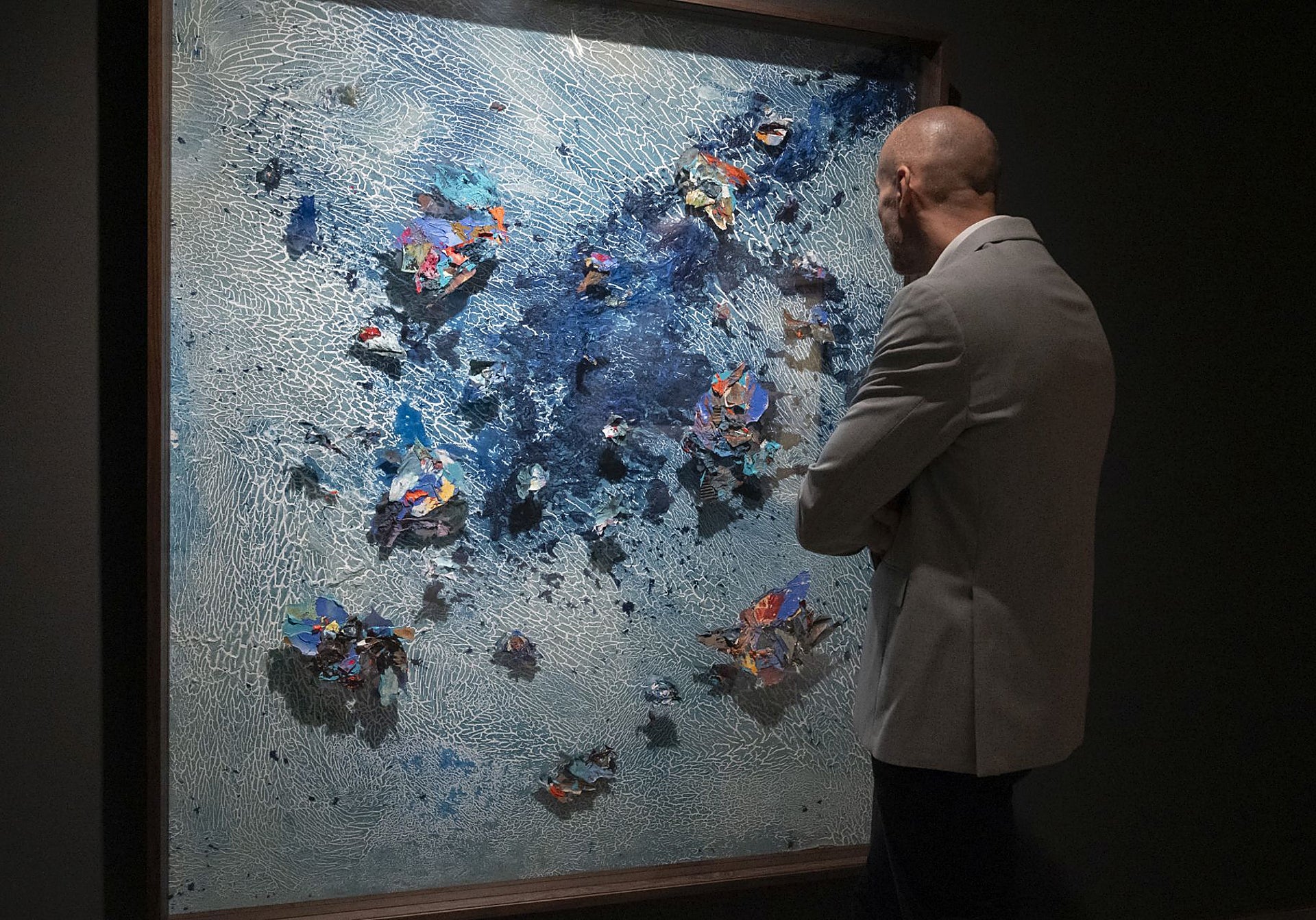 La relación entre el hombre y la naturaleza en una fusión artística. La atractiva vinculación que la existencia establece entre una y otro es el motivo que llena de contenido la exposición 'Caleb' de la pintora castellonense Cristina Babiloni. La Fundación Bancaja ha presentado esta mañana en su sede de Valencia la propuesta con la presencia del presidente de la Fundación Bancaja, Rafael Alcón; la comisaria, Alicia Ventura; y la propia artista. Desde este jueves 20 de noviembre y hasta el 16 de febrero se puede visitar. Es un encuentro que permite sumergir la mirada en los océanos, los fondos marinos, las islas y todos los encantos del agua salada.