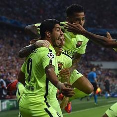Los jugadores del Barça celebran uno de los goles de la noche.