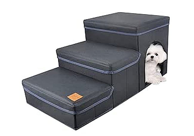 Para que tu perrete lo tenga más fácil, te propongo esta escalera portátil que le ayudará a subirse al sofá o a la cama contigo. Además, cuenta con espacio de almacenamiento para llevar sus cosas. Te la puedes llevar hoy en Amazon por sólo 28,98€.