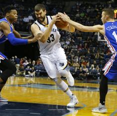 De nuevo el pívot Marc Gasol surgió como el jugador español más destacado en la jornada de la NBA y esta vez lo hizo en el duelo entre los Grizzlies de Memphis y los Sixers de Filadelfia de su compatriota Sergio Rodríguez.