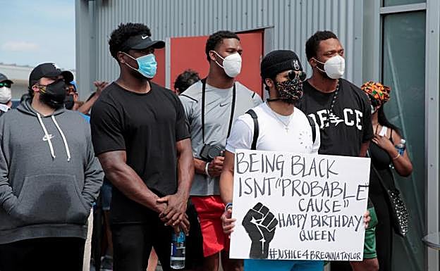 El crimen de Floyd durante una brutal detención, en la que fue inmovilizado por un agente que le hincó una rodilla en el cuello durante casi nueve minutos, desató las mayores manifestaciones de las últimas décadas en Estados Unidos, en las que han marchado numerosos jugadores de la NBA.