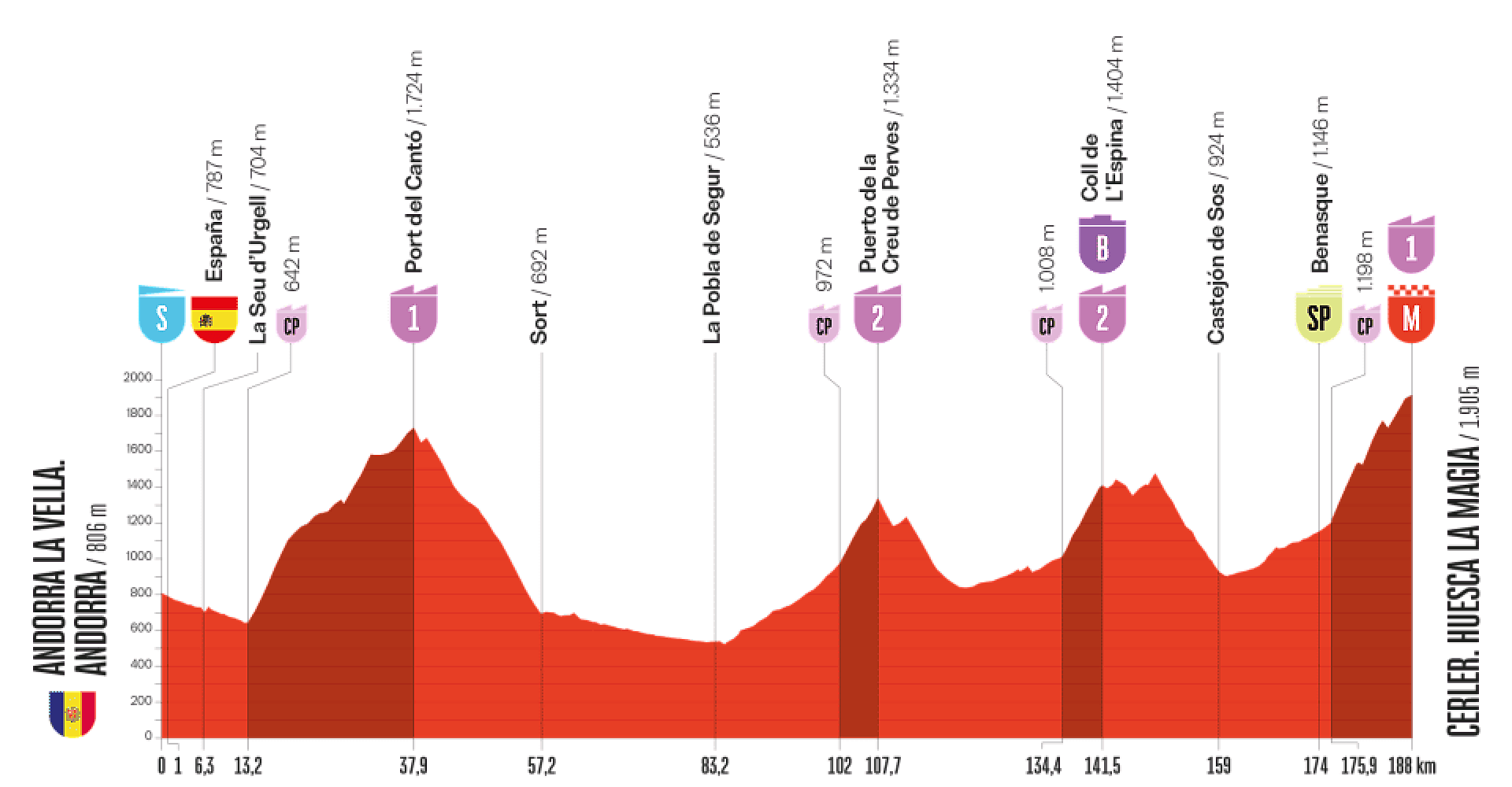 El viernes 29 de agosto la Vuelta a España recorre Andorra y finaliza en la provincia de Huesca, después de unir la capital andorrana con Cerler, en los Pirineos de Huesca, tras pasar por Pallerols, Gerri de la Sal, Laspaúles o Benasque. Será una «nueva jornada de montaña. El Coll del Cantó, de primera categoría, servirá para formar la escapada del día antes de afrontar dos puertos de segunda. La llegada en alto será más dura que la jornada anterior, con unos primeros kilómetros hasta el pueblo de Cerler donde la mayor exigencia se concentra en la primera parte de la subida», explica Fernando Escartín.