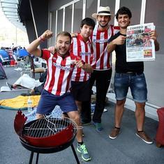 Centenares de aficionados han hecho cola durante varios días para poder presenciar en el estadio un partido histórico para el club bilbaíno