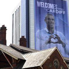 Un anuncio de Bale da la bienvenida a Cardiff.
