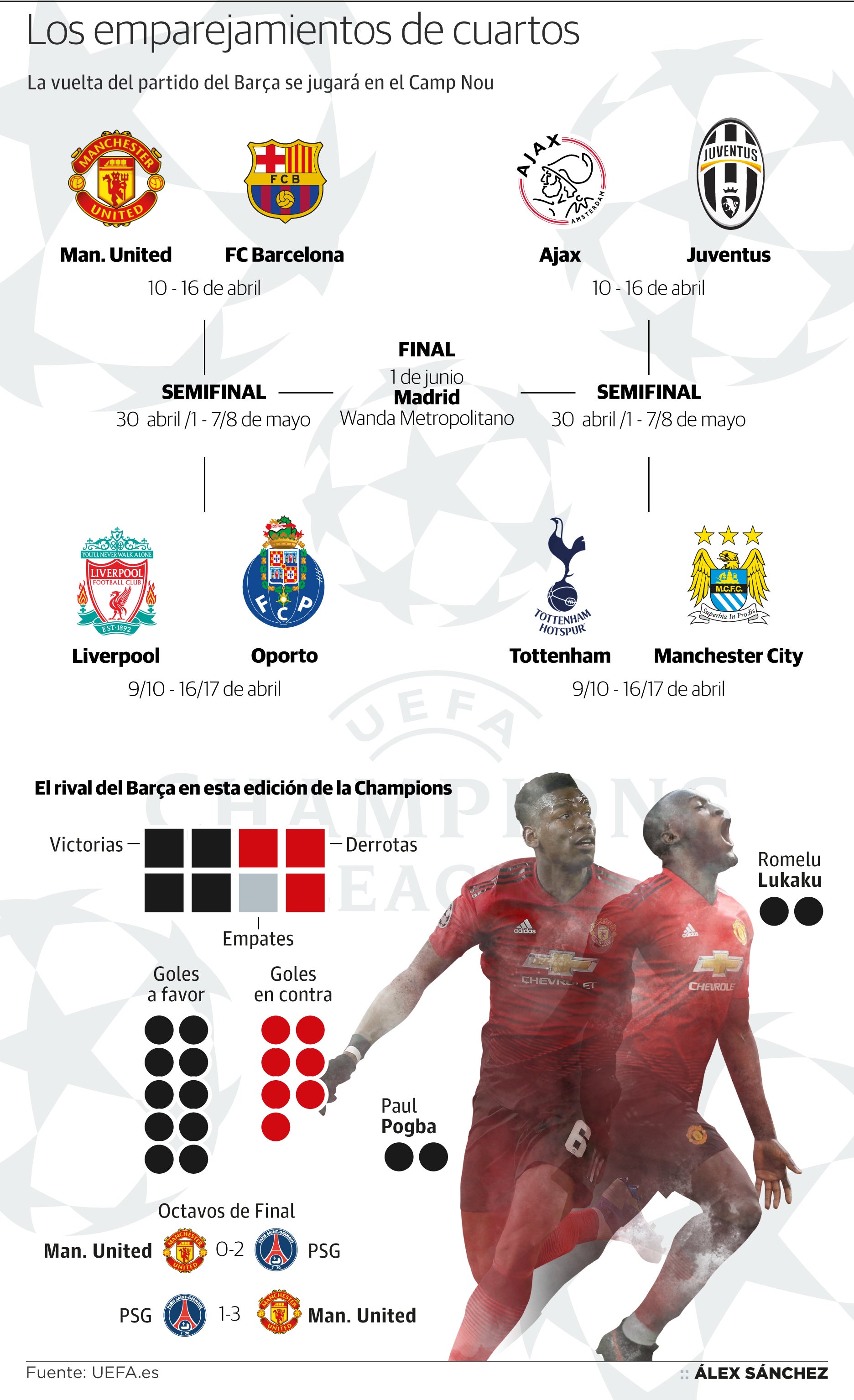El Manchester United tiene el peligro del equipo que ya ha resucitado una vez en esta competición. Estuvo tres semanas eliminado tras el 0-2 de la ida de octavos ante el PSG, pero logró un milagroso y sorprendente 1-3 en la vuelta. Tambien tocó fondo esa campaña con José Mourinho, pero volvió a ver la luz con la llegada de Ole Gunnar Solskjaer, un histórico del club que se encargará de recordar a sus pupilos que su afición se merece una gesta y una venganza por las dos finales perdidas ante el Barça de Pep Guardiola en 2009 y 2011.