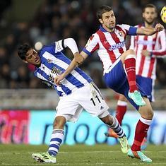 Todo se le había puesto de cara al Atlético con ese tempranero tanto en el que volvieron a fallar los centrales del conjunto donostiarra, pero la Real, consciente de que llegará un nuevo entrenador y de que con el interino Asier Santana debían reaccionar los jugadores con carácter y actitud, y no sólo para intentar salir del pozo, sino para intentar ganarse un sitio, no dejaron de presionar y tapar espacios, hasta que a Carlos Vela le salió un fantástico tanto con la zurda para poner la igualada. Poco después el mexicano cayó en el área víctima de una entrada de Godín, pero el árbitro no señaló el penalti reclamado por Anoeta y el Atlético no sólo sobrevivió a esa comprometida acción, sino que pasó a dominar, aunque frente a un rival agazapado atrás, se atascaba continuamente.