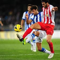 La Real llevó la iniciativa en busca del empate, aunque le faltaba profundidad. En cambio, encontró el gol a los 27 minutos en una acción a balón parado que Agirretxe peinó en el área hacia el fondo de la red, con la ayuda de Julián Cuesta.