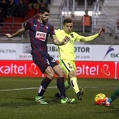 Durante los primeros minutos no hubo un claro dominador, ya que el Eibar acusó las bajas -sobre todo la de Keko Gontán- y los cambios de posición de sus jugadores. La primera ocasión clara fue visitante, ya que el brasileño Deyverson se plantó solo ante el portero Riesgo, pero su disparo raso y cruzado pasó junto al poste. Los azulgranas respondieron minutos después con un disparo de Dani García desde el borde del área que se fue fuera.