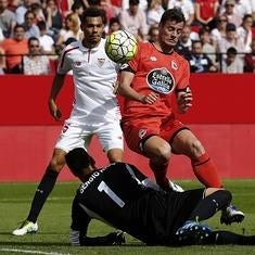 El conjunto gallego se entonó, tomó el mando del partido y llegó más a la meta local, como en una falta que lanzó Fayçal Fajr y paró Sergio Rico a los 5 minutos. El Deportivo empezó a rozar el empate, como mediada esta mitad en un gran tiro de Lucas Pérez que atajó el portero sevillista y a trece del final en un centro que tocó Oriol Riera, muy activo, que despejó mal el meta y salvó Escudero.