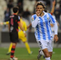 Demichelis celebra un gol en su primera etapa en el Málaga.