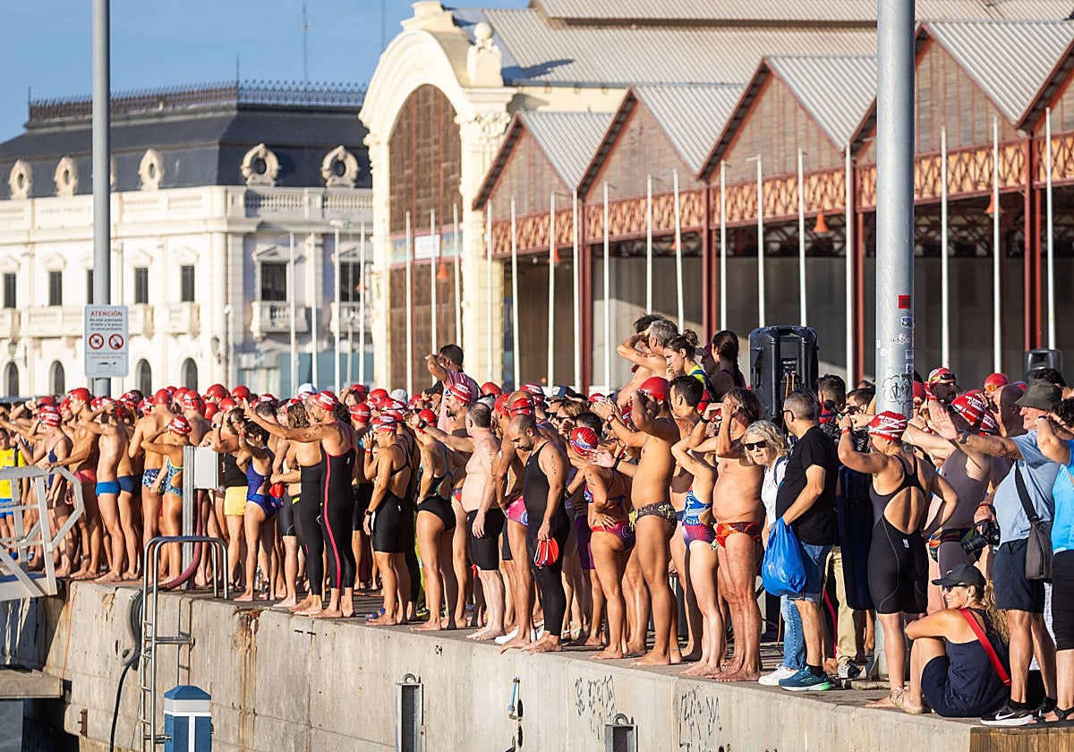 Más de 600 participantes estrenan el nuevo circuito de la Travesía a nado del Puerto| Vicent Nebot, de 79 años, y Amparo Valderas, de 70, los nadadores más veteranos que consiguen completar una prueba que coincide con el Autonómico