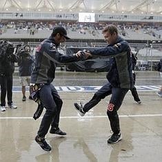 Así, en pista sólo se vio agua y cómo los pilotos y los miembros de las escuderías mostraban sus cualidades menos conocidas. Desde uno de Force India que mostró que es un auténtico genio del break dance, pasando por un Daniel Ricciardo y un Daniil Kvyat que se marcaron un bailecito que hizo las delicias de los sufridos fans. También Carlos Sainz y su compañero Max Verstappen fueron protagonistas, pero no por ellos mismos, sino por sus padres: Carlos Sainz Cenamor y Jos The Boss Verstappen cogieron prestados unos monos de unos mecánicos de Toro Rosso y se montaron en los monoplazas de sus hijos, aunque no se atrevieron a salir a pista. Incluso hubo carreras de barcas entre los miembros de las escuderías Sauber y Force India. Los sufridos seguidores estadounidenses agradecieron el esfuerzo de todos los pilotos, que salieron a saludar, a hacer gestos desde el pitlane o al menos a intentar que sobrellevasen la espera.