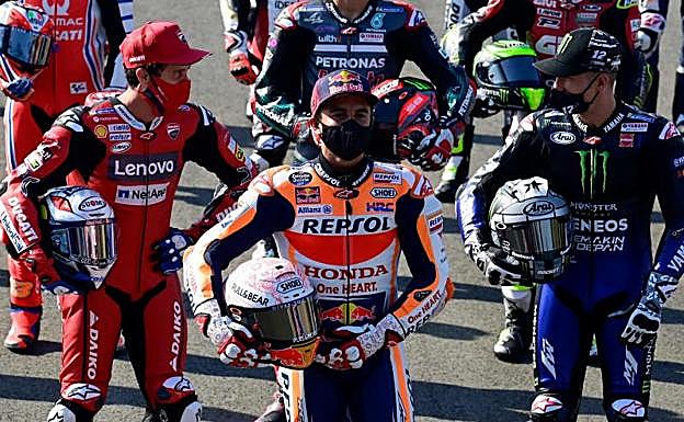 También estrenó su casillero de caídas Alex Márquez, decimoséptimo en el combinado gracias a un tiempo en el primer libre que pudo marcar ayudado por la estela de su hermano, que pareció tratar de echarle un cable cuando los dos habían montado neumáticos nuevos en busca de un buen registro. «Yo hago mi entreno y tengo mi plan de trabajo, y hemos coincidido con Alex en la última salida, o no, porque yo no le he visto. Quizás su equipo estaba esperando la oportunidad de seguirme. Es lo que tiene que hacer ahora, pero no sólo a mí, a los otros también», puntualizó el campeón, que usó la sesión de la tarde para dar vueltas y vueltas a los mismos neumáticos, demostrando un muy buen ritmo de cara al domingo. «En general estoy contento, porque incluso probando cosas estoy al nivel de ritmo de Quartararo y Viñales, que quizás son los dos que marcan un poquito de diferencia, aunque hay otros pilotos que van bien como Bagnaia o Miller, e incluso Dovizioso».