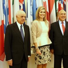 El presidente de BBVA, Francisco González, junto a la reina Máxima de Holanda y el secretario general de la OCDE, Ángel Gurría, ha presentado en París el Informe PISA 2015 sobre Competencia Financiera. Según las conclusiones del estudio, España ha descendido varios puntos y se mantiene por debajo de la media de la OCDE. El presidente de BBVA ha llamado a sumar esfuerzos y, entre todos, avanzar en una cuestión tan relevante para el bienestar de las personas como es la educación financiera.