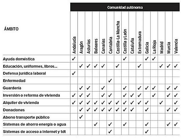 En el apartado de aprovechar las deducciones cabe resaltar que muchos gastos pueden suponer ese recorte del IRPF. En esta tabla encontrarás, por comunidad, de qué deducciones te puedes aprovechar. (Incluir tabla)