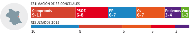 El Ayuntamiento de Valencia reforzaría la mayoría de la izquierdas. Compromís, formación del alcalde saliente Joan Ribo, conseguiría entre 9 y 11 concejales; el PSOE sumaría entre 6 y 8; Podemos 3 y 4.