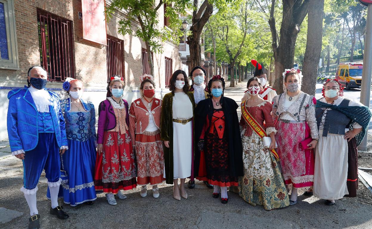 Díaz Ayuso posa con varias personas vestidas con el traje regional en el día de la Comunidad de Madrid. Efe
