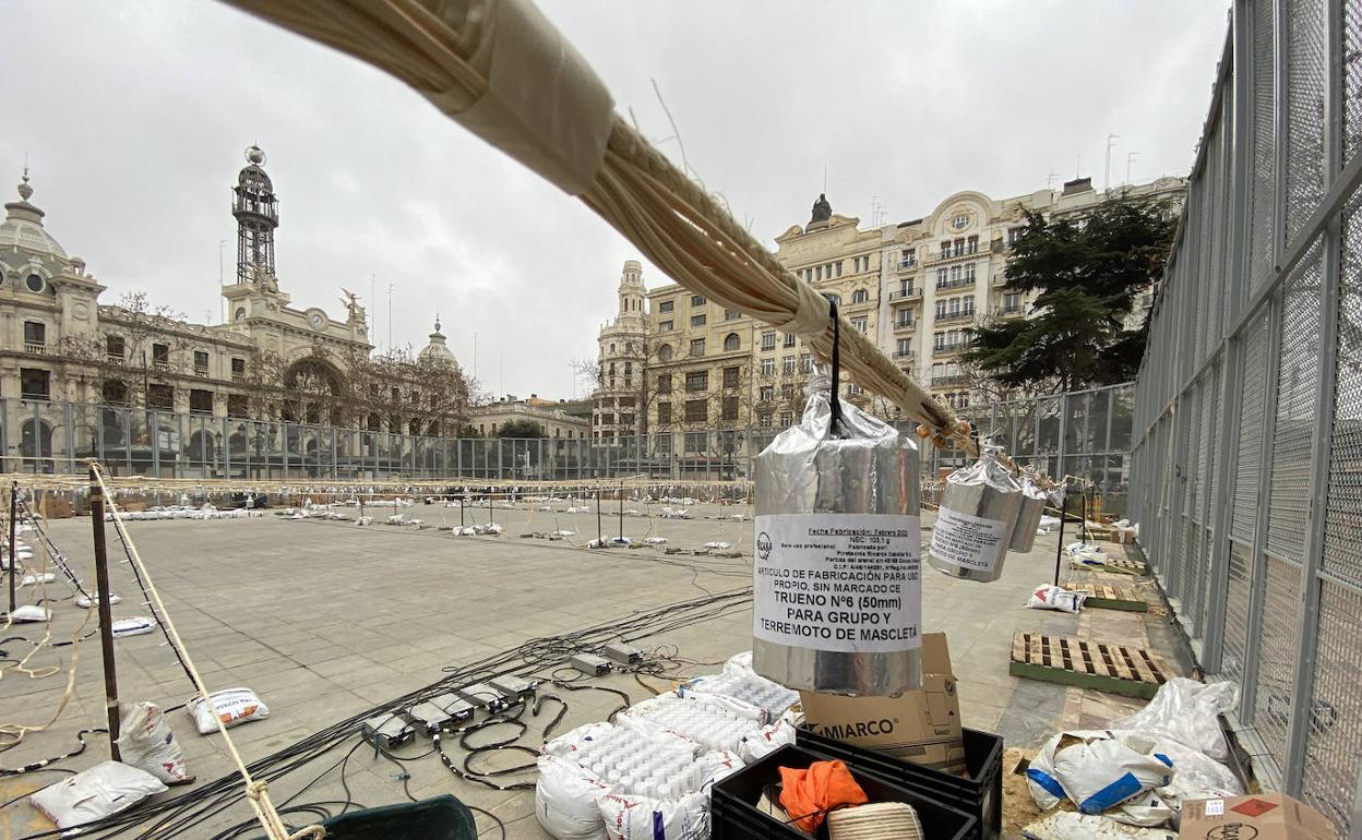 Así ha preparado Ricardo Caballer la innovadora mascletà en la plaza del Ayuntamiento