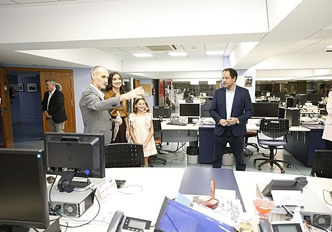 Las primeras preguntas para las embajadoras de las Fallas, tras vivir como en un sueño la proclamación en el hemiciclo, con momentos tan mágicos como la subida de la escalinata, el discurso dirigido a los valencianos y el posado en el Salón de Cistal, se han formulado en el periódico decano de la ciudad, donde han sido recibidas por el director del diario, Jesús Trelis, y Arturo Checa, jefe de la sección de Valencia.