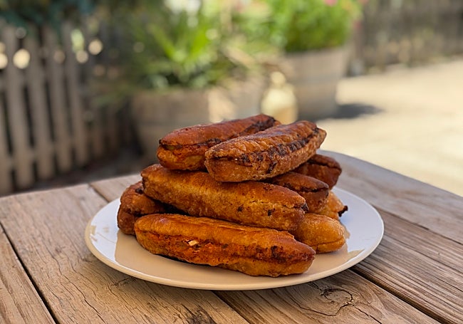 - Se reboza en huevo batido y se fríe con abundante aceite. Cuando están bien fritos, los dejamos reposar sobre un plato con papel absorbente, y listo.