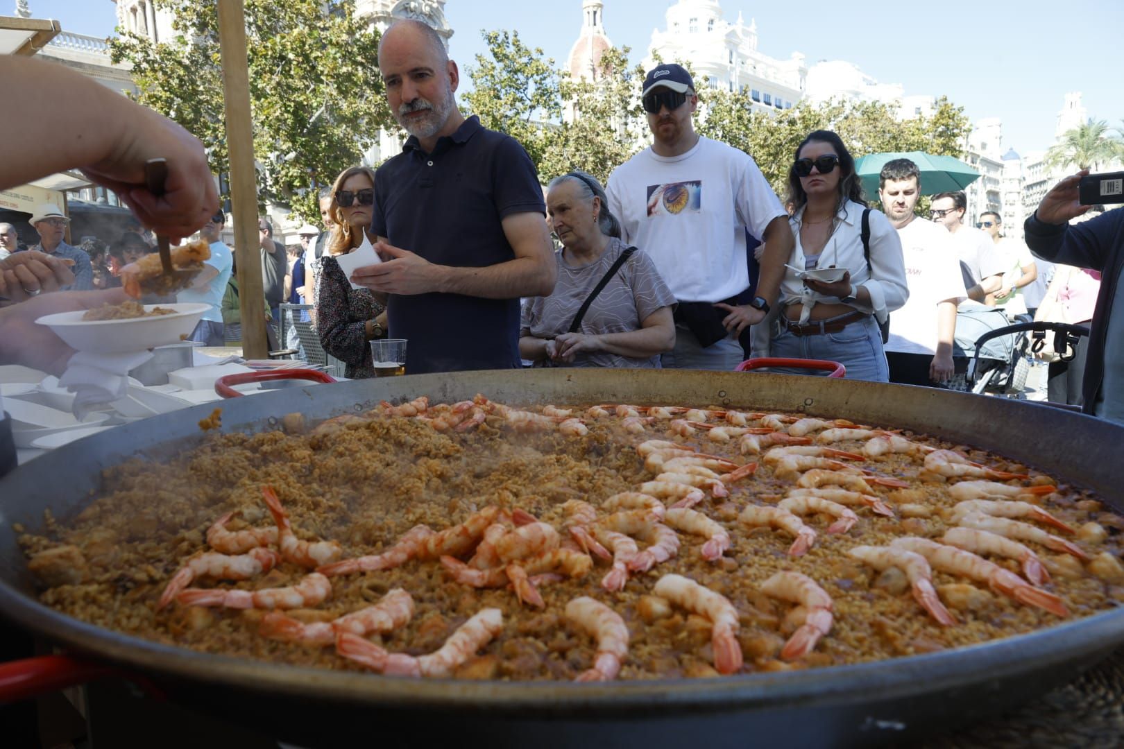 La planta gramínea más apreciada en las mesas, el arroz, se ha adueñado este fin de semana de la Plaza del Ayuntamiento de Valencia. Tastarrós ya está aquí. Este sábado y mañana domingo el corazón de la ciudad huele que da hambre y es escenario de exquisitos guisos con el arroz como protagonista, desde la paella más nuestra a otras innovaciones con el apreciado grano.