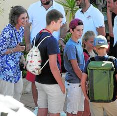 Pasadas las diez de la mañana, la Reina Sofía ha llegado a Calanova al volante de su automóvil, en el que la acompañaban Victoria e Irene, mientras que los otros cuatro nietos ocupaban un segundo vehículo.