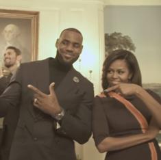 Se llama 'Mannequin Challenge' o reto del maniquí y consiste en grabar un vídeo con todos sus protagonistas parados en el tiempo. Pues bien, los Cleveland Cavaliers lo han llevado al extremo. Aprovechando su paso por la Casa Blanca como campeones de la NBA, LeBron James y los suyos grabaron un vídeo en el que incluso participó la primera dama, Michelle OBama, que aparece retratada como si se estuviera haciendo un selfi con el jugador.
