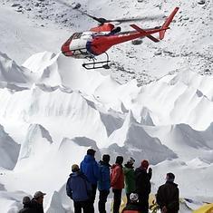 El movimiento telúrico causó varias avalanchas en el Everest que enterraron parte del campamento base donde se encontraban 1.000 escaladores y guías, entre ellos 400 extranjeros, que se preparaban para el ascenso en pleno comienzo de la temporada de escalada, de acuerdo con el Ministerio nepalí de Turismo. Durante toda jornada de hoy helicópteros han sobrevolado el techo del mundo en busca de supervivientes. El secretario adjunto de Turismo, Suresh Acharya, indicó, según los medios locales, que 32 personas han sido rescatadas en esa región y 29 están siendo tratados en el hospital en la localidad de Lukla, cercana al Everest.