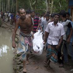 Uno de los cadáveres recuperados tras el naufragio en Barisal.